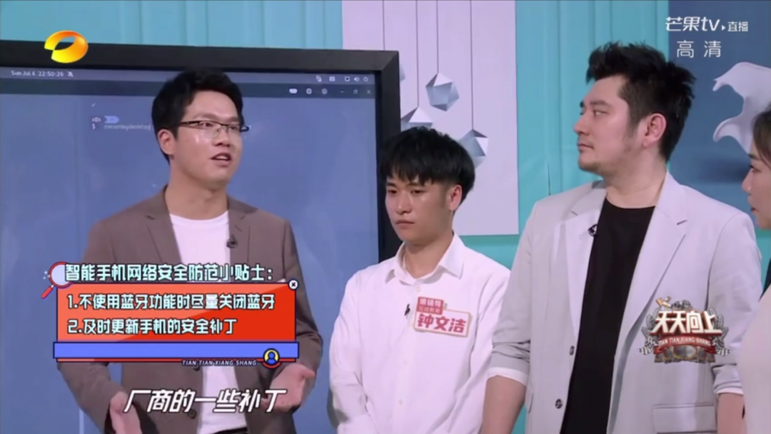 由安恒信息高级副总裁王欣、安全研究员徐井源和钟文洁参与录制的湖南卫视《天天向上》节目于7月11日22:00准时播出,作为新时代网络诚信守护团代表,他们在现场为观众揭秘生活中的“网络安全”。